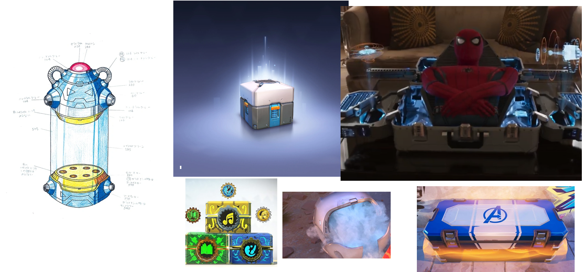 Dit zijn de inspiratie bronnen, ik zou zeggen dat ik vooral heb genomen van de designs van de armor capsule in Megaman x, en de lootcrate in overwatch.